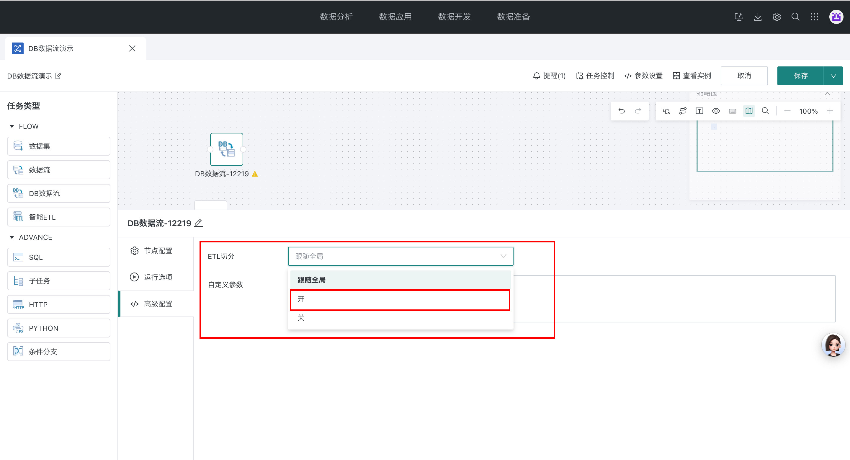 这种情况建议开启ETL切分配置,系统会将DB数据流中的逻辑自动切分为多条SQL,推到数据库运行,确保任务的顺利运行。