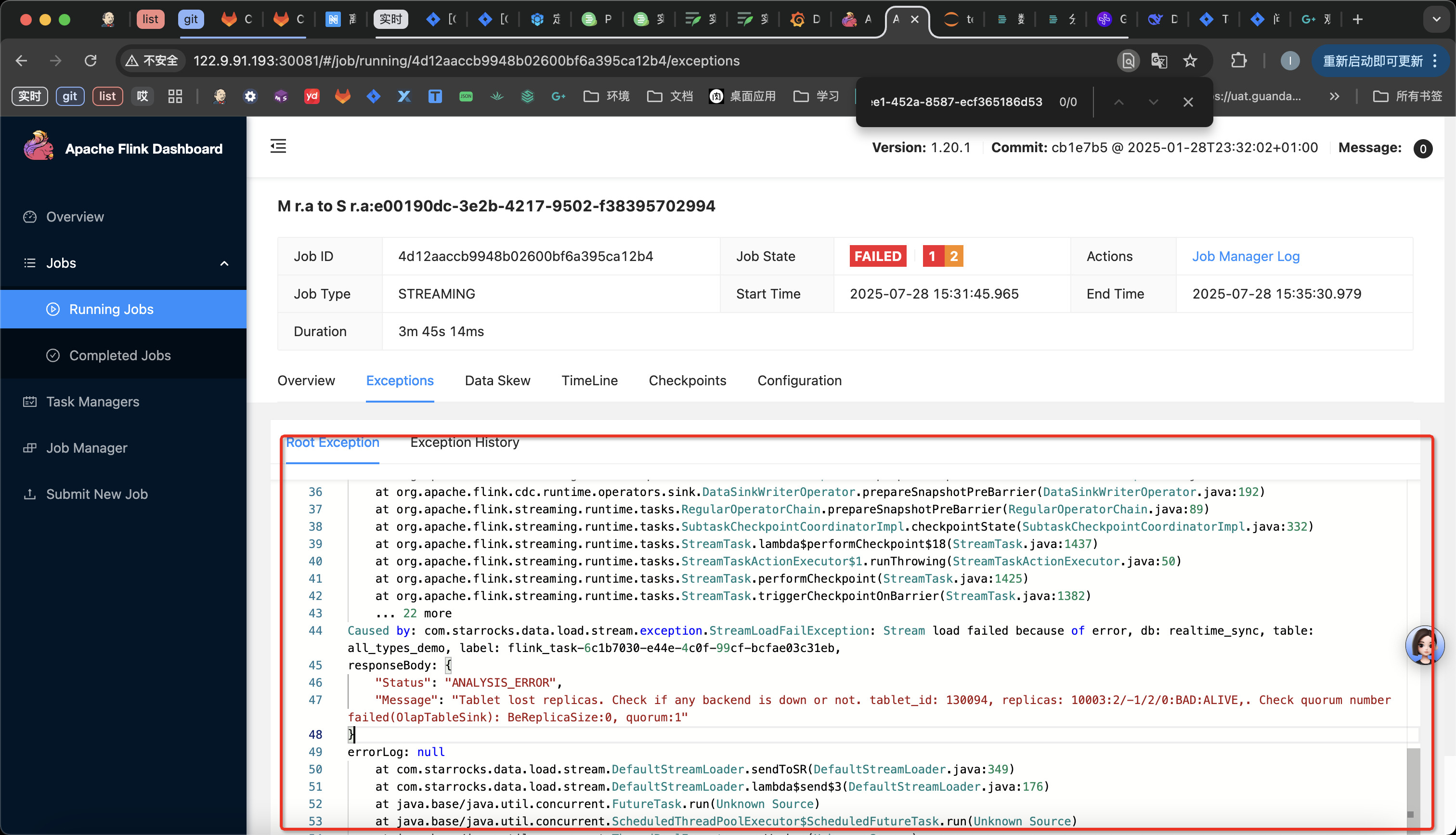 - 平台参数配置的StarRocks副本数需要小于实际StarRocks中的副本数,超过时会有如下报错,等于时当数据库状态不稳定偶现数据丢失